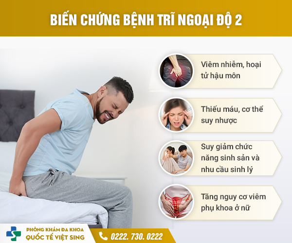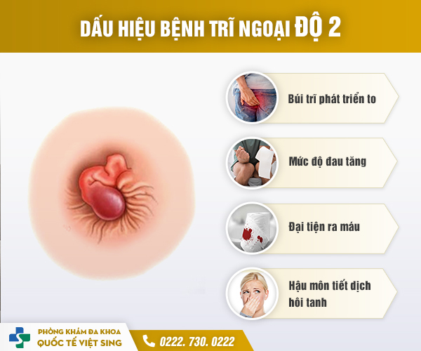 - Với trĩ ngoại độ 2, búi trĩ sa ra ngoài tạo điều kiện thuận lợi để vi khuẩn gây bệnh tấn công và phát triển.