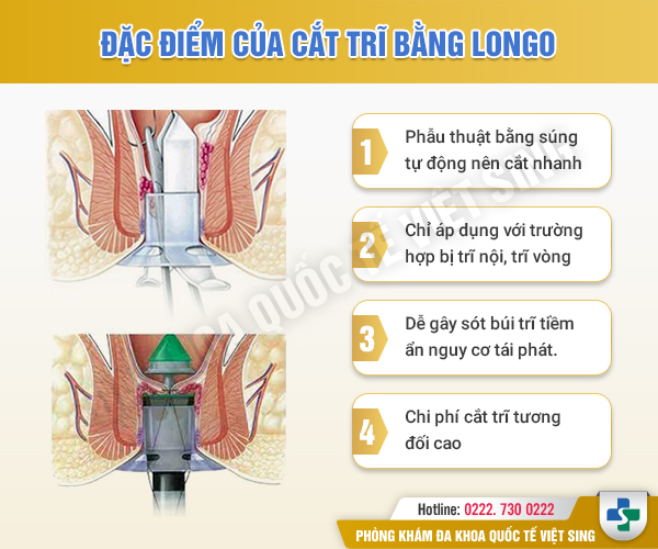 - Thêm vào đó, chi phí mua thiết bị để cắt trĩ bằng Longo rất cao nên ít người muốn lựa chọn nếu không có đủ điều kiện kinh tế.