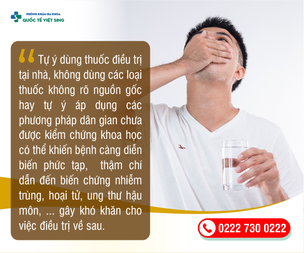 Dùng thuốc uống, thuốc bôi chỉ làm chậm trễ thời gian chữa bệnh, khiến bệnh có cơ hội phát triển gây ra các biến chứng nguy hiểm đến tính mạng như ung thư hậu môn, nhiễm trùng hậu môn, mưng mủ, lở loét,…
