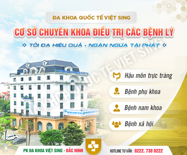Với những thông tin trên, phòng khám Đa khoa Quốc tế Việt Sing tự hào là một trong những phòng khám chuyên khoa hàng đầu tại Bắc Ninh với chất lượng điều trị cao – đội ngũ bác sĩ giỏi – chi phí nhiều ưu đãi. Bạn có thể liên hệ nhanh tại 0222.7300.222 để đặt lịch hẹn trước để đến thăm khám chuyên khoa ở Việt Sing