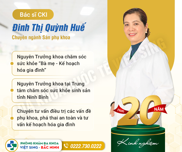 - Bác sĩ CK I Sản Phụ khoa Đinh Thị Quỳnh Huế: Nguyên Trưởng khoa Trung tâm chăm sóc sức khỏe sinh sản, kế hoạch hóa gia đình tại Ninh Bình, bác sĩ Huế có đầy đủ kinh nghiệm cũng như chuyên môn trong việc tư vấn kế hoạch hóa, phương pháp đình chỉ thai an toàn dành cho chị em