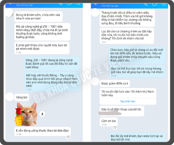 - Áp dụng dịch vụ tư vấn 24/7: Hệ thống tư vấn giúp bệnh nhân có thể tiếp cận dịch vụ phòng khám bất cứ lúc nào, bất cứ khi nào, luôn có người giải đáp mọi thắc mắc mà không cần chờ đợi.