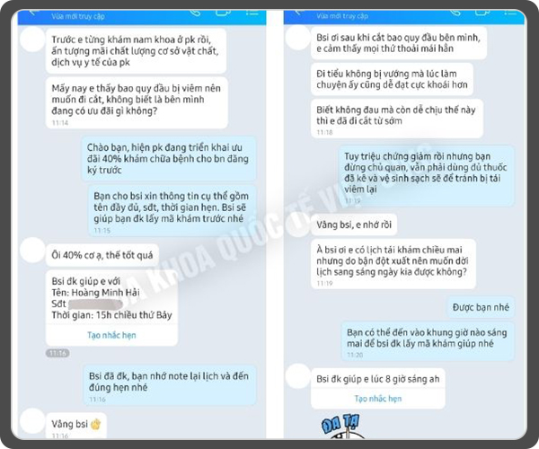 Anh Hoàng Nam (36 tuổi, Bắc Giang): “Thật may là ngay từ đầu tôi đã chọn cắt bao quy đầu bên Việt Sing. Mới được một tuần mà tôi đã thấy phần quy đầu lành lại, cảm giác đi tiểu không còn bị buốt như trước nữa, cũng không thấy mấy triệu chứng ngứa rát, sưng tấy. Làm gì cũng thấy thuận lợi hơn hẳn.”