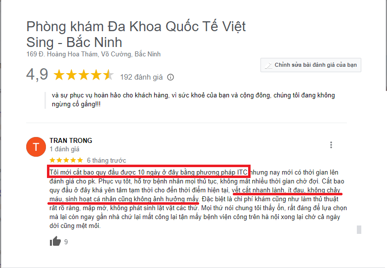 - Anh H.M (Bắc Ninh): “Cắt bao quy đầu tại Việt Sing đúng là sự lựa chọn sáng suốt, quá trình tiến hành nhanh, không đau đớn, cũng không cần nằm viện. Mọi người đang tìm kiếm địa chỉ uy tín thì hãy đến đây.”