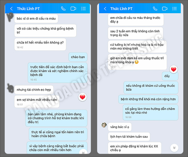 Em đi ngoài ra máu tươi mấy hôm nay rồi. Đang sợ xanh mặt đây mà kinh phí không có nhiều, không biết phòng khám mình có ưu đãi gì cho bệnh nhân không?