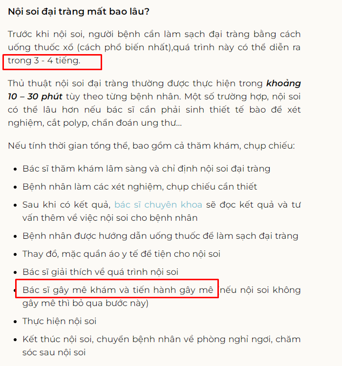 - Quy trình phức tạp, trước khi nội soi người bệnh phải thụt tháo bằng cách uống thuốc xổ,quá trình này có thể kéo dài trong 3 – 4 tiếng.