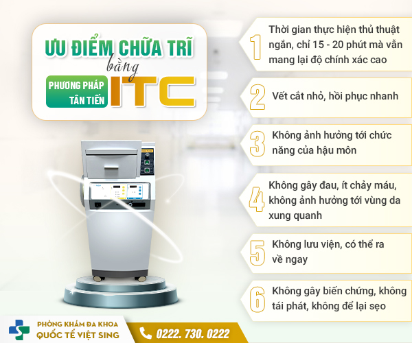 Là điểm sáng của nền y học hiện đại những năm gần đây, kỹ thuật xâm lấn tối thiểu ITC trở thành phương pháp cắt trĩ hiện đại, đang được giới chuyên gia khuyên dùng. Bởi phương pháp ITC khắc phục được hoàn toàn nhược điểm của các phương pháp cắt trĩ như Milligan Morgan, Ferguson…