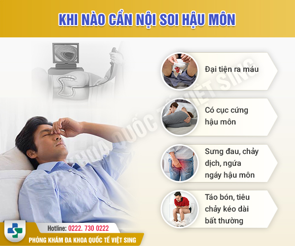 Vậy khi nào cần đi soi hậu môn? Theo bác sĩ Lê Văn Hốt, mọi người nên đi thăm khám, soi hậu môn định kỳ để kiểm tra sức khỏe vùng hậu môn trực tràng cũng như tầm soát ung thư đại trực tràng. Bên cạnh đó, ngay khi phát hiện những triệu chứng dưới đây hãy đi thăm khám và soi hậu môn càng sớm càng tốt.